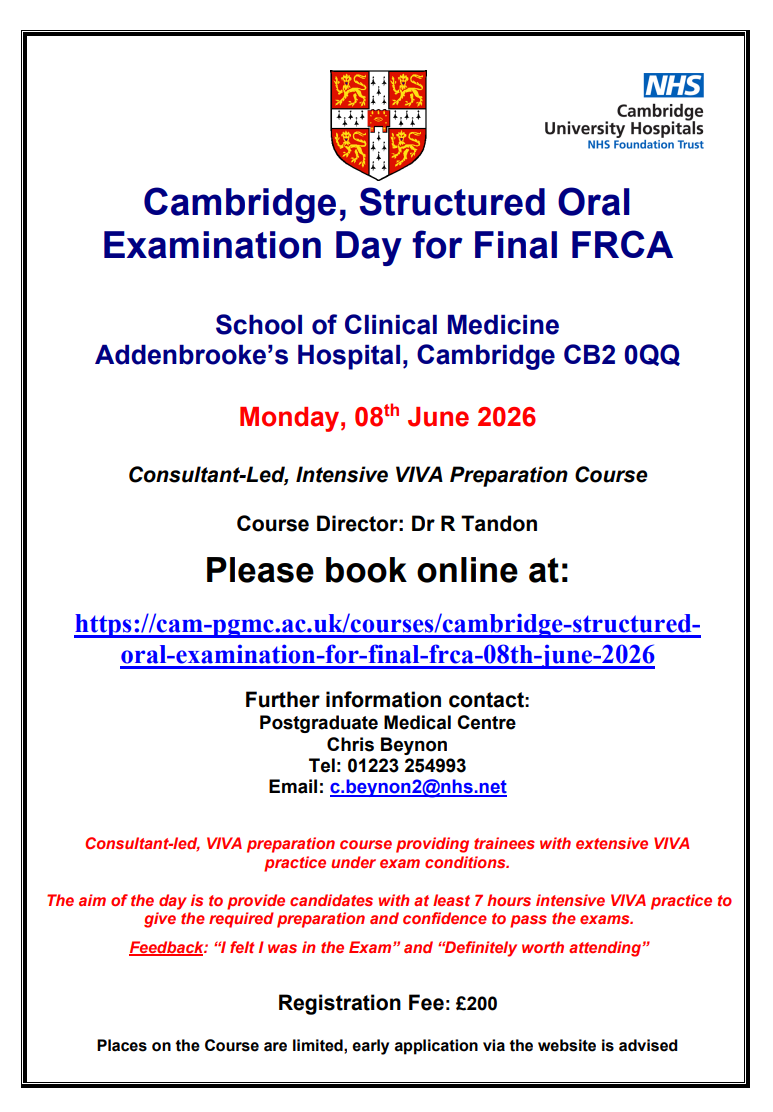 The director of this course is Dr Rakesh Tandon, editor of the book 'Structured Oral Examination Practice for the Final FRCA'.