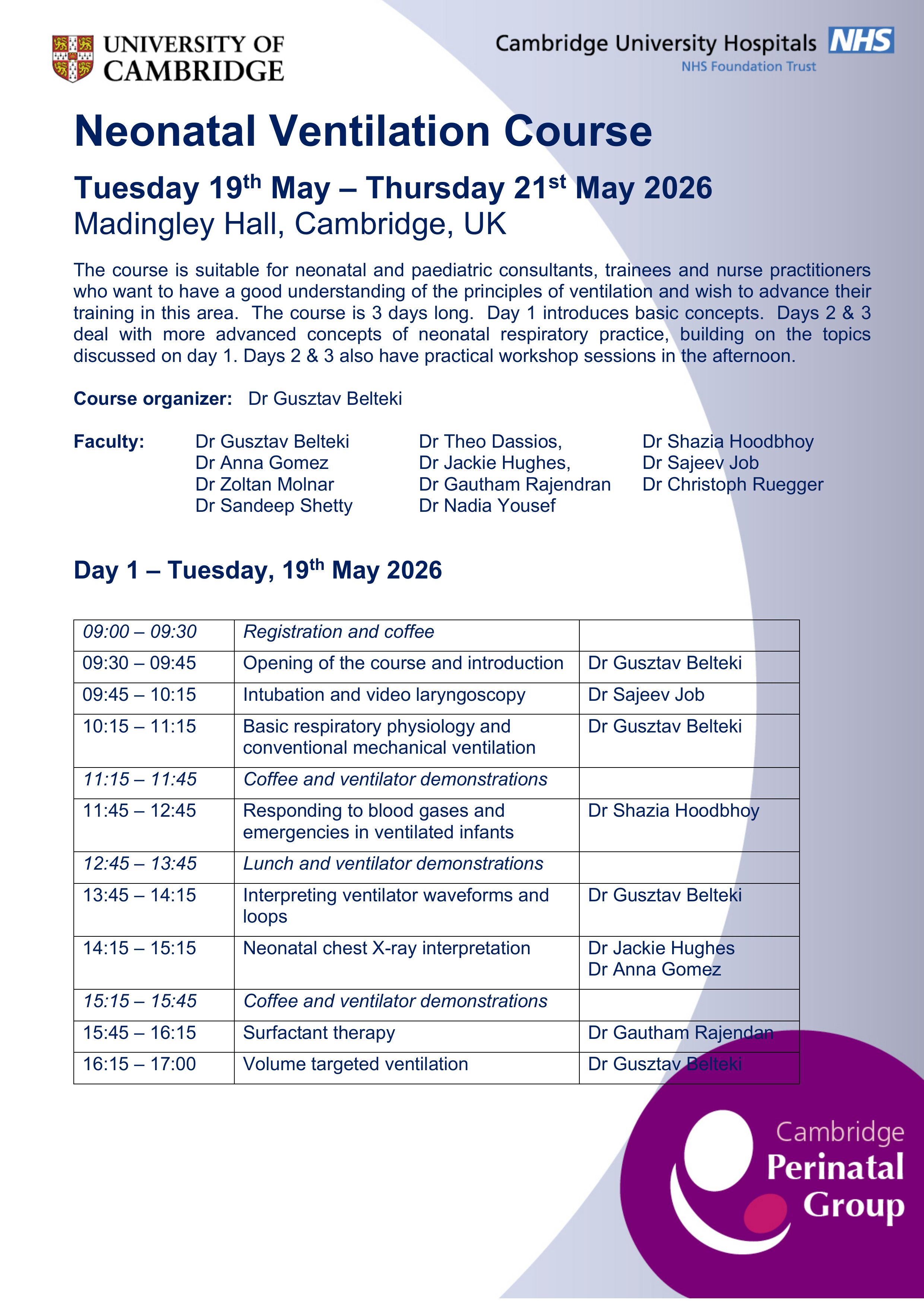 Should you wish to attend the lecutres without attending the practical session please book at https://cam-pgmc.ac.uk/courses/cpg-ventilation0526-lectures-only
