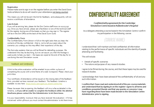 Confidentiality agreement for the Cambridge Simulation Centre based at Addenbrooke’s Hospital